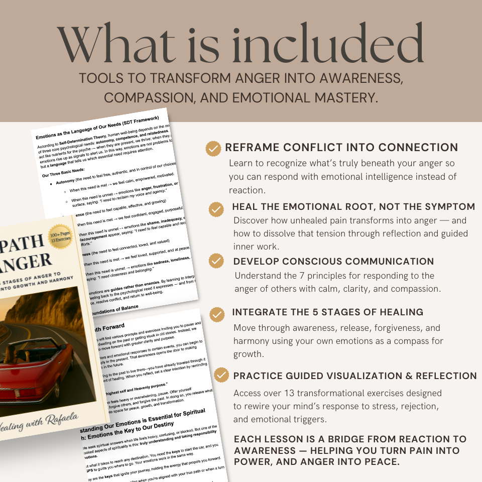Through practical exercises, reflection prompts, and emotional awareness tools, you’ll learn how to move through anger — not as a reaction, but as a sacred signal leading you back to wholeness.